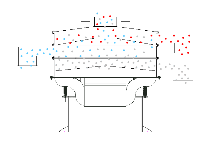 五層振動(dòng)篩的工作原理基于振動(dòng)分散+多層篩選的協(xié)同模式。當(dāng)物料從頂部進(jìn)料口進(jìn)入篩箱后,振動(dòng)電機(jī)啟動(dòng)產(chǎn)生高頻振動(dòng),帶動(dòng)五層篩網(wǎng)同步做三維運(yùn)動(dòng)。物料在振動(dòng)作用下沿篩面均勻擴(kuò)散,依次經(jīng)過五層篩網(wǎng)的逐級(jí)篩選:粒徑最大的粗顆粒被最上層篩網(wǎng)攔截,從對(duì)應(yīng)粗料出料口排出;符合該層級(jí)篩網(wǎng)孔徑的物料則透過篩網(wǎng),進(jìn)入下一層級(jí)繼續(xù)篩選;依此類推,經(jīng)過五層篩網(wǎng)的精準(zhǔn)分離,最終從底部出料口排出最細(xì)級(jí)別的物料。